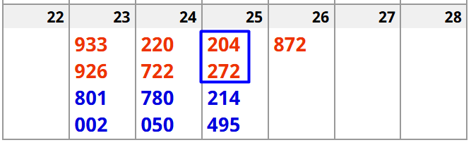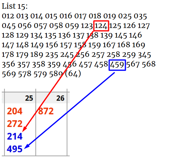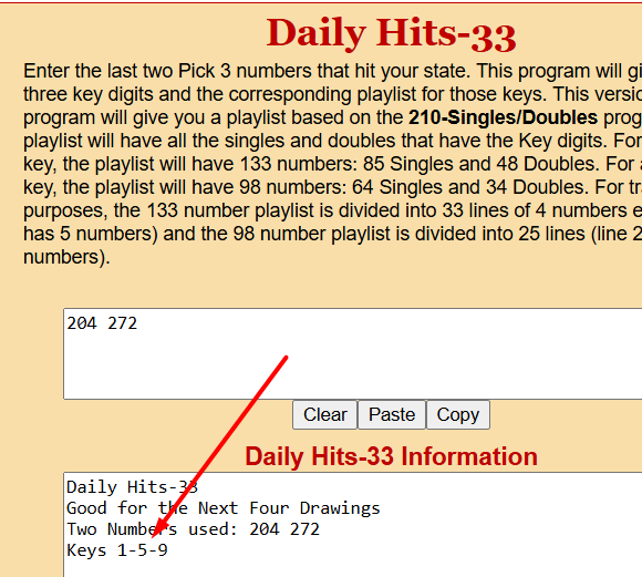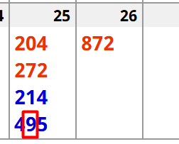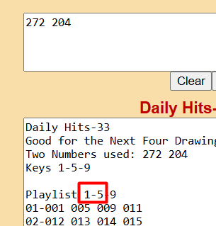 204 and 272 give me keys 1, 5, and 9….meaning that a 1, 5, or 9 will hit in the next TWO drawings. That is correct: 214 has a 1 and 495 has a 5.