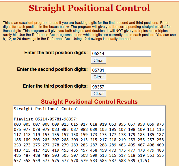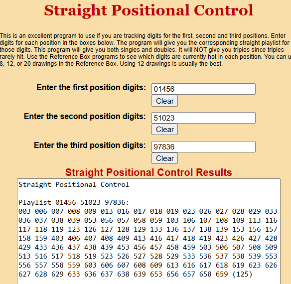 1-First…..get all the numbers using the Straight Positional Control program. Keep in mind that the list is LESS than 125 numbers (5x5x5) because there are several duplicates.
