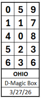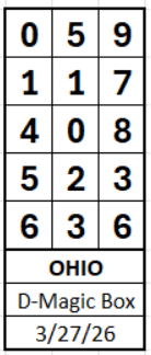 REMEMBER: Most of the hits from the Magic Box (both Pick 3 and Pick 4) come from the top two digits in the first position (0xxx and 1xxx in the box below). This reduces the list (2x5x5x5). 0349 just hit New York. Its on the reduced list (just 169 box numbers.