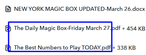 I am calling this the Daily Magic Box. This box is updated every night. I explain how to create it in this report: The Daily Magic Box-Friday March 27—Found HERE.
