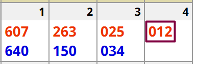 ADVANCED-Another thing you can do is FIRST position tracking (0-2-1-4-5). Go back a week. Look at 812 below. It’s in the box as 2-1-8. Mark the 2 (its in the first position). NOTE: the number is here as 128 as well (its a Repeating number)–but use 2 because its higher than 1.
