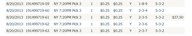 I took my own advice and after seeing those 6 back to back doubles (6D), I decided to play. I played all 100 C100 numbers for a small win of $37.50.