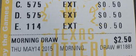 575 is one of the two STRAIGHT numbers I posted for Texas for this