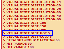 If you are in the states at the bottom (NY, AK, CA, VA, CT, MO, LA), I suggest you use the HOT version of the program: VISUAL DIGIT DIST-HOT 5. In other words, you would wheel the 5 hottest digits from the last 200 Pick 3 numbers that hit. Actually…I may start doing this in a week or two (the reports for these states will come from the HOT 5 program).