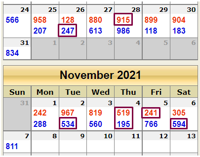 The 7 hottest digits in the SINGLES in South Carolina are 1-9-2-3-4-5-7. Digits 1-9-2-3 are the hottest digits. One of these four digits hits SC almost EVERY DAY (for example: Pair 19 has been hitting a lot recently: 195, 519, 819). When wheeled, these 7 digits gives 35 hot singles, which you can see below. This list is somewhat better than the list on my last Kindle. The hottest pairs in the singles that hit SC are: 24, 45, 35, 39, 37, 12, 14, 79. You will find many numbers with these pairs that are not on the list. For example, 305 hit on Saturday (November 6—Pair 35). Number 967 has pair 79.