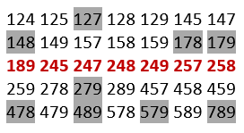 124 147 249 257 278 289 458