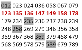 123 135 136 147 149 158 178