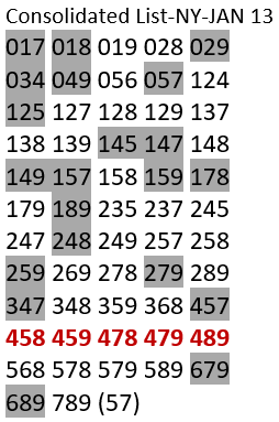 Enter both the Rundown list and the Super List into the Group Matching program. The 2-way list will be the reduced Super List. The current reduced Super List for New York is below. It only has 6 numbers.