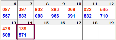 The numbers 139 and 571 hit the next day, which are two of the ten numbers.
