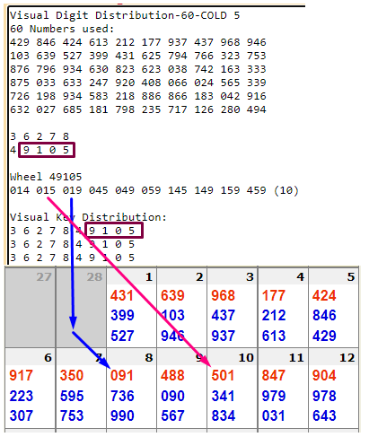 I have noticed that there is usually at least one hit (in the next 7 days) based on just the last 4 digits. These are the 4 coldest digits in the last 60 drawings. For example, below you see the output for GEORGIA for March 5.