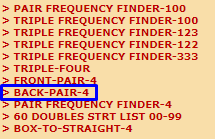 I will have to go back to THIS PRODUCT and make some changes. I am basing the straight numbers on the hottest front PAIR in the codes. Maybe I should be looking at the hottest DIGIT in the FIRST position in the codes and base the straight numbers on that digit. And then base the last TWO digits on the hottest BACK pair in the codes.