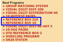 I have found that MANY hits come from the top 3 levels of the Reference Box 10 program when the last 200 numbers are used (do this on Saturday night; the box is good for the next TWO weeks). Either of these two programs can be used: