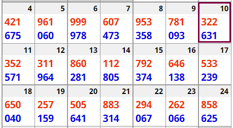 The box above came from the 200 numbers starting from SEPT 10. The output from the program is below.