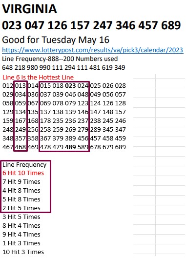 The five hottest lines are 2-4-5-6-7 (40 numbers).