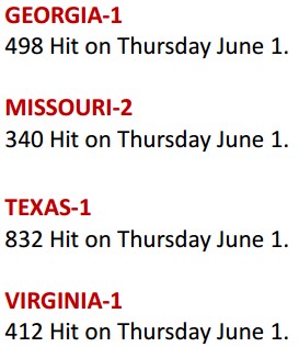 The 4 hits from yesterday came from the same 15 states I posted yesterday HERE.