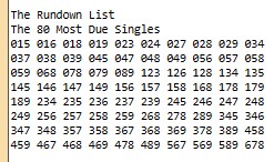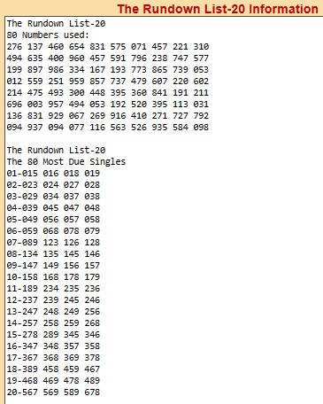 The Rundown List-20 program breaks the 80 numbers in the Rundown List into 20 lines of 4 numbers each, as you can see below.