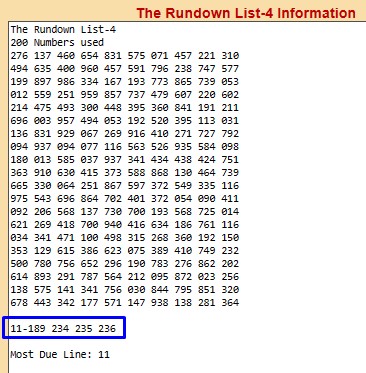 OK...but which line is the Most DUE (coldest)? Use the Rundown List-4 program to find out. As you can see below, Line 11 is most due in NEW YORK right now.