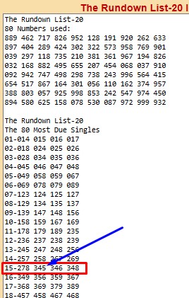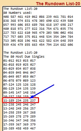 Next…go to the Rundown List-20 program to see which numbers are on the top lines…in this case, the hit came from the second hottest line; Line 11.