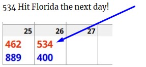For FLORIDA: I entered the last 400 numbers that hit into the program. This will tell me which of the 20 lines in the Rundown list hits the most. As you can see below, the top line is 15. It hit 20 times in the last 160 days. I included the top 5 lines in my prediction (lines 15, 04, 20, 05) – however, if you want, you can just play the top line: 15 (just 4 numbers). If you want the last 400 numbers that hit Florida, email me and I will send you the list.