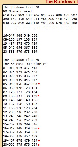 16-347 348 349 35608-136 137 138 13919-467 478 479 48905-049 056 067 06820-568 579 678 689