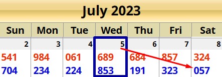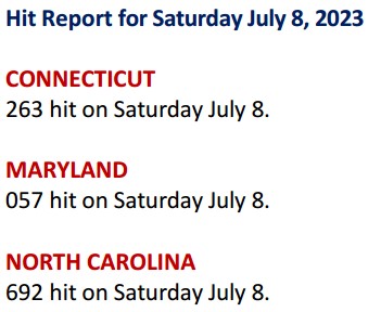 This system works really well in Maryland. The hit from yesterday (057) came from the list posted on July 5 (Wednesday)…so it took 3 days for one of the 5 numbers to hit.