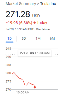 Tesla hit a high of $298 per share yesterday (July 19)….