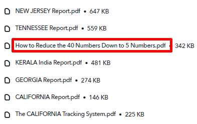 This NEW set of 5 numbers will replace the 5 numbers I am putting up now HERE (which don’t hit that often). In the meantime, you can get the next set of 5 numbers for California, Tennessee, New Jersey and Georgia by doing the workout I explain in the How to Reduce the 40 Numbers Down to 5 Numbers report posted HERE.