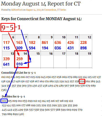 Keys for Connecticut for MONDAY August 14:
