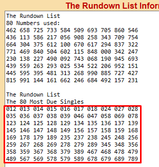4-The 2-way list is the Reduced Power List. These numbers will start to hit QUICKLY. One of them will usually hit today or tomorrow.