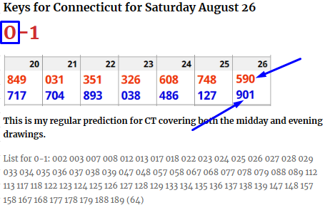 This is my regular prediction for CT covering both the midday and evening drawings.