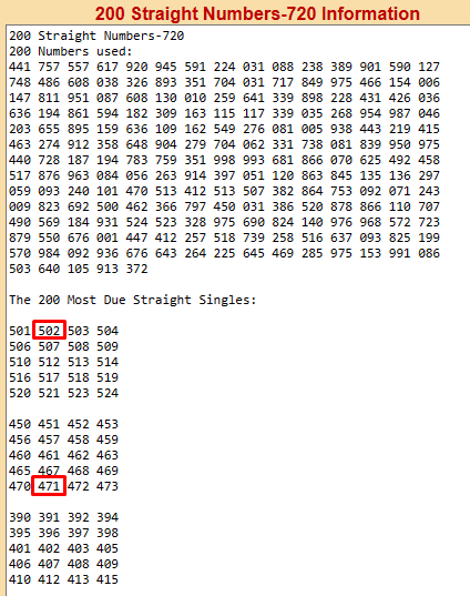 Something to keep in mind: The numbers that hit your state TODAY will most likely be one of the 200 numbers in the 200 Straight Number program. For example..the two numbers that hit Connecticut yesterday were on the list of 200 numbers. I will be reducing this list in the future with my key digits.