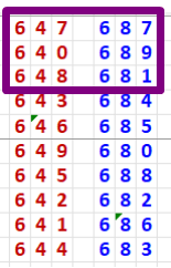 STRATEGY: The best strategy may be playing the top 3 numbers from each pair (6 numbers): 647, 640, 648, 687, 689, 681.