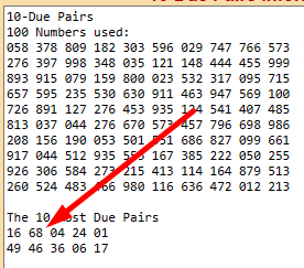 One problem with pairs. Say you like pair 68; that means having to play 10 numbers. But which of the 10 numbers are the best? I just solved that problem. I updated the sheet again. Go HERE to get the updated sheet. Now it has two pages. The second sheet is named 10-10.