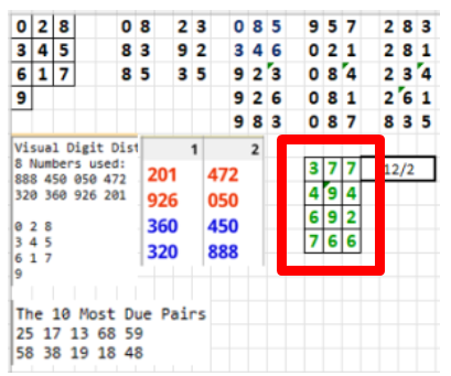 I just added 4 straight numbers to the Texas sheet. These are the 4 green numbers in the box below. These 4 numbers are good for MONDAY December 4.