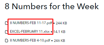 The numbers for this week are posted HERE.