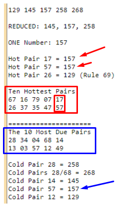 I did this for VIRGINIA HERE. The 5 Power Numbers for VA right now are: 129 145 157 258 268 – I was able to reduce it down to just one number: 157 (NO 6s or 9s, Hot Pairs 17 and 57). When looking at the pairs, pay more attention to the HOT pairs.