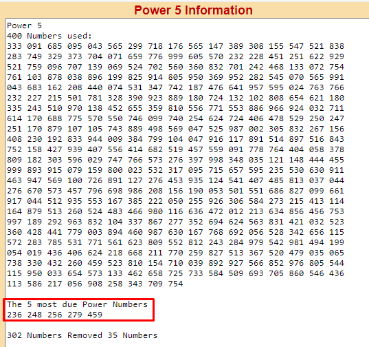 1-Enter the last 400 Pick 3 numbers that hit your state into the POWER 5 program to get the 5 Power Numbers.