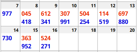 There were 3 hits on Tuesday: Arkansas (17), Indiana (57), and Wisconsin (49). The new pairs for these states are below.