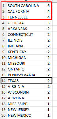 Keep in mind….Texas only got 2 hits (from the most due pair) in the last 3 weeks….while SC got 6 and CA and TN got 4 (Excel sheet below posted HERE).