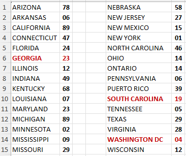 SOUTH CAROLINA – 1 HIT