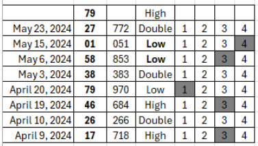 If you want to learn my most up to date tracking system, you should consider purchasing this new product, here. In this product I explain the chart below (you can create the same chart for your state). I also explain why I think that 279 and 479 are excellent numbers to play in New York right now. If you previously purchased the 2 Number System, this product is FREE.