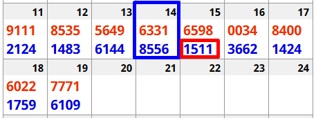 Notice above, the two triples at the bottom: 1115 and 1555. One of them hit the next day: 1511.