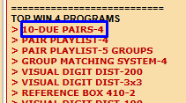 I will be creating a weekly report for the PICK 4 game using this program (this program will be updated soon so you only have to enter the last 60 numbers to get the most due pair – not the last 100):