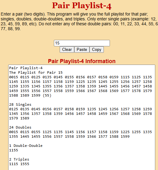 As you can see above, the most due pair in the Pick 4 game in Missouri is 15. To get the full playlist, enter pair 15 into this program: