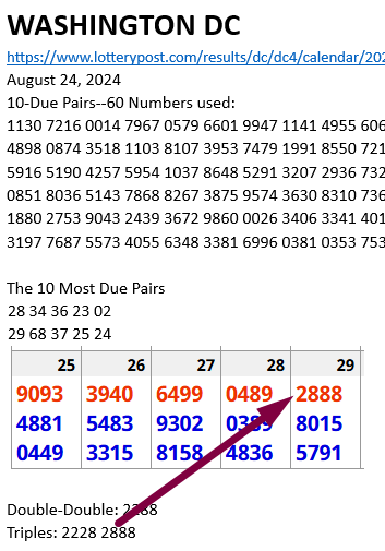 2888 Straight in WASH DC on Thursday August 29.