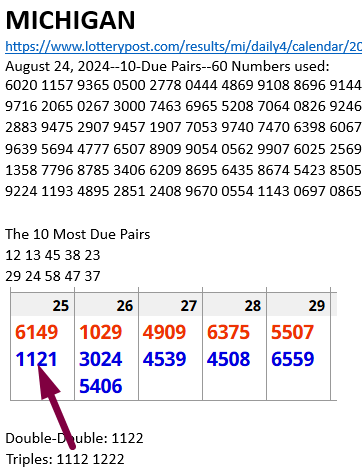 I been saying this for the last 2 weeks: ONLY play the Double-Doubles and Triples for now. That is all you have to do right now. Guess What? One of the two triples hit STRAIGHT in Washington DC on Thursday August 29. The P4 Report is posted for FREE HERE if you want to check it out yourself.