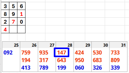 Then look at the numbers that hit the following week, and see if they are in the box. I see a couple of patterns; for example: this is the most obvious pattern: