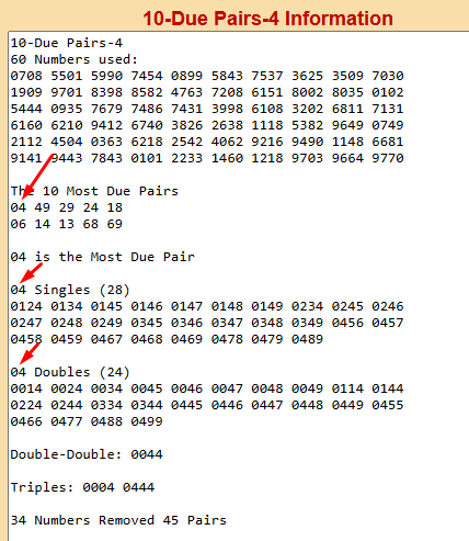 I just improved the output of the Pick 4 most due pairs program.