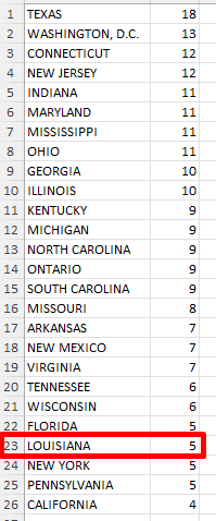 Louisiana is not a hot state….its rank is 23 on the list.