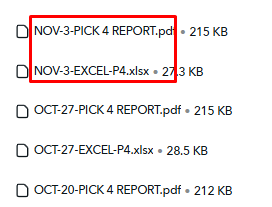 The Pick 4 numbers for this week (Nov 3-9) are HERE.